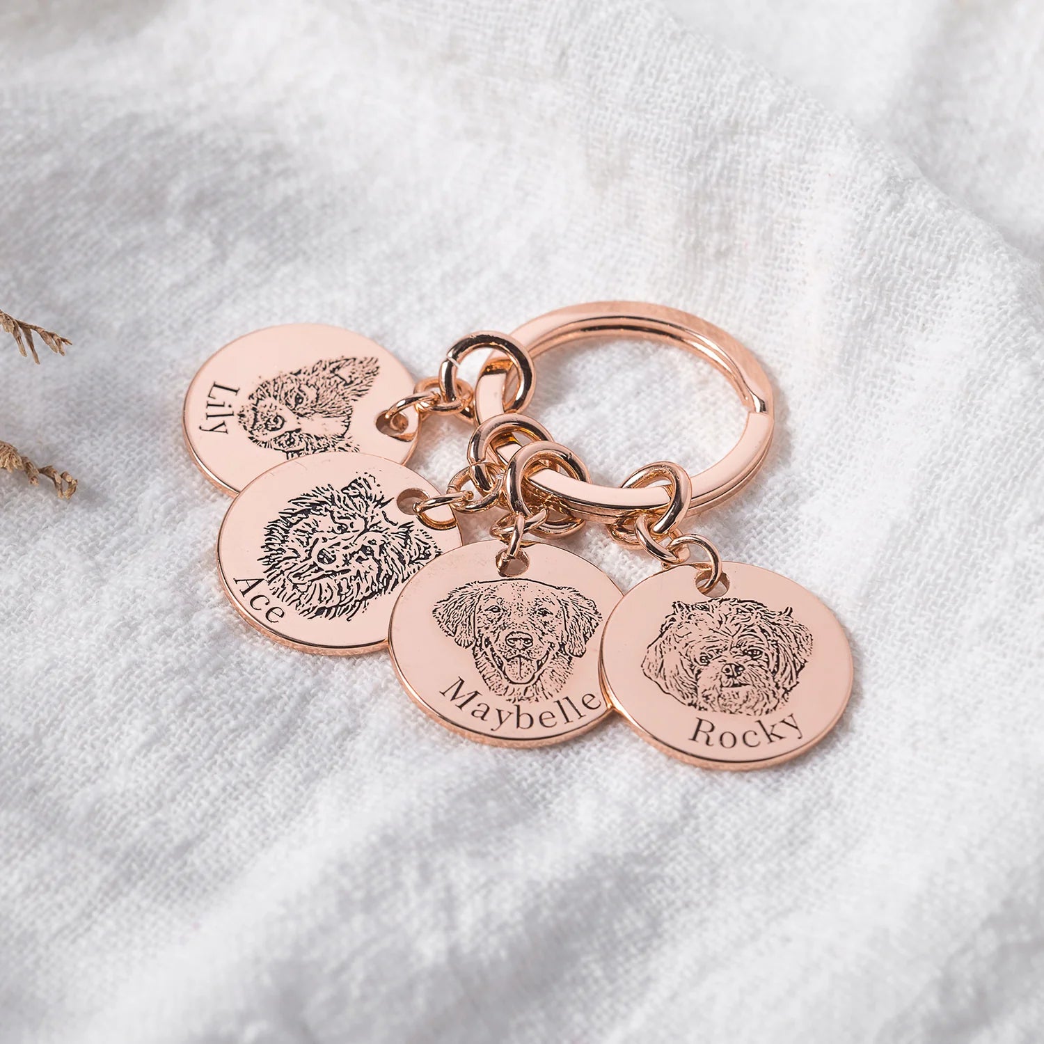 Ta med deg kjæledyret ditt overalt! Last opp et bilde av din pelskledde venn, så lager vi en skinnende nøkkelring med ansiktet og navnet deres på. Perfekt til nøklene dine eller vesken din.